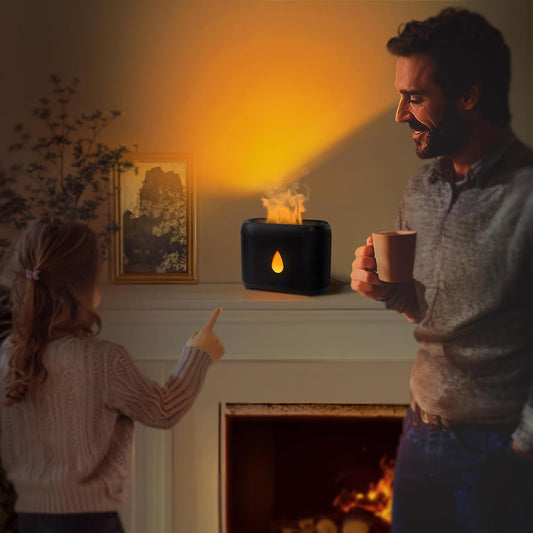 Flame Diffuser for Essential Oils, 200Ml Ultrasonic Aroma Diffusers with Cool Mist, Aromatherapy Diffuser with Auto-Off Protection, Small Humidifier for Home,Office,Bedroom,Gift (Black)
